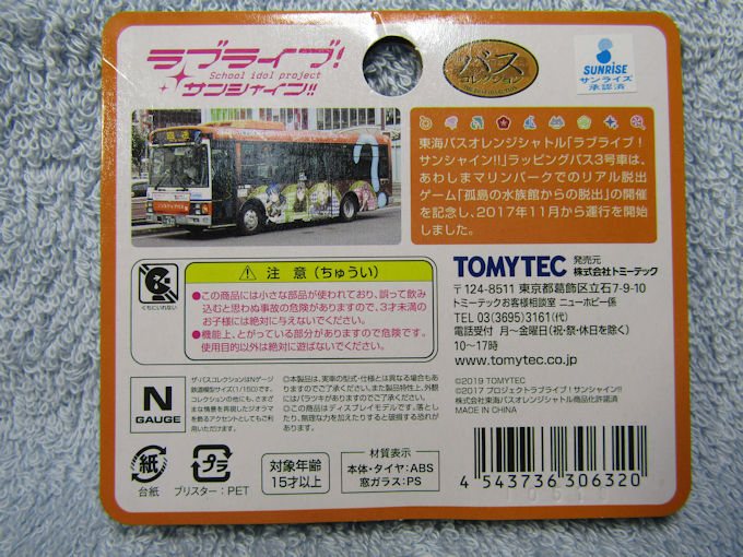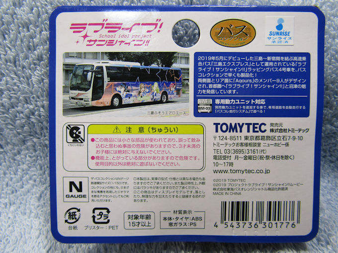 今回使用したバス本体はTOMYTECバスコレクションの東海バス「ラブライブ!サンシャイン‼」3号車。