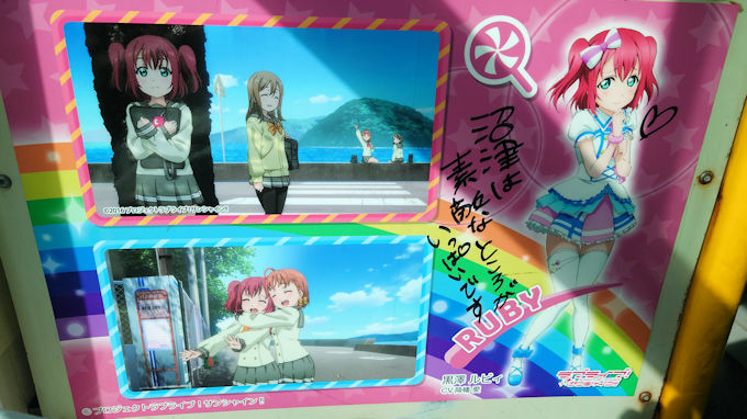 ラブライブ!サンシャイン!!の主人公、高海千歌の実家となっている安田屋旅館の前も通過します。