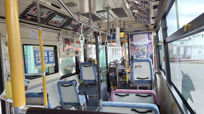 東海バスでもラッピング車は車内も同様にAqours一色に。