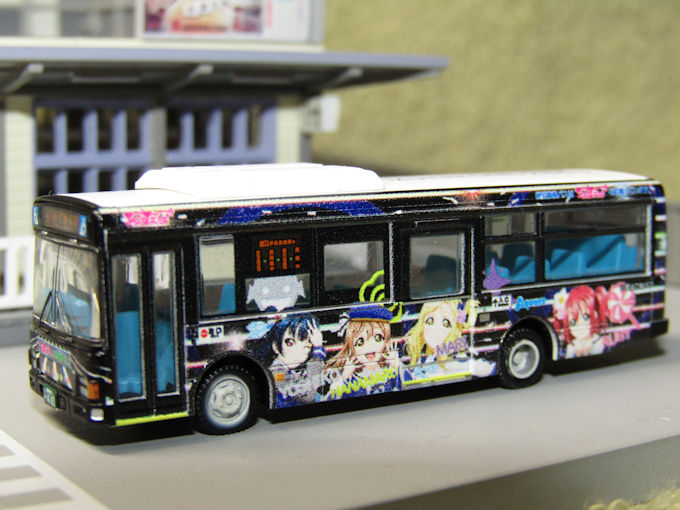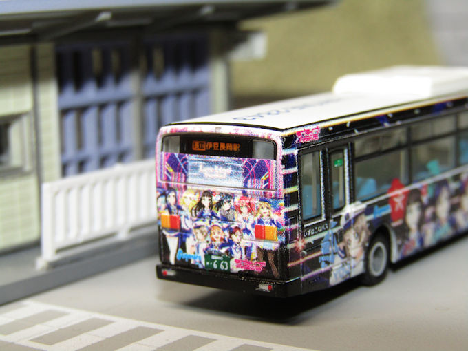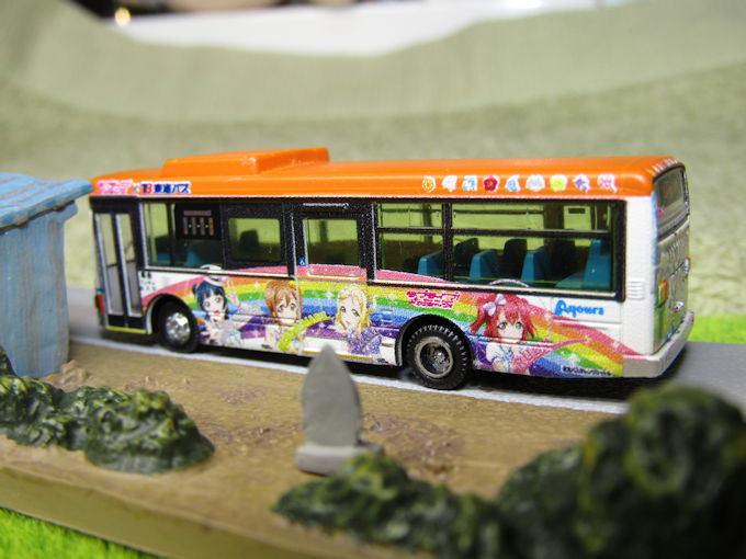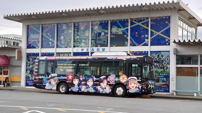 静岡県沼津市の内浦地区を中心にストーリーが展開されるアニメ「ラブライブ!サンシャイン!!」のラッピングがされた東海バスの車両。
