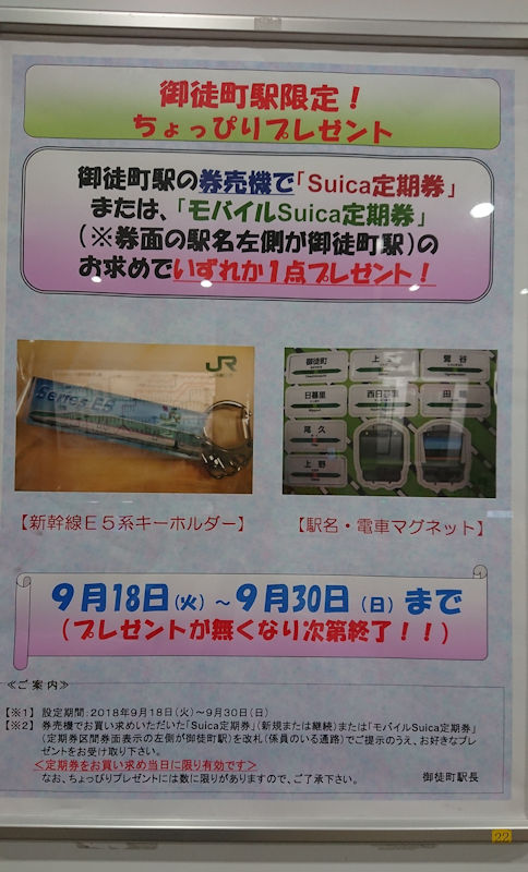 JR御徒町駅の券売機でSuica定期券を購入、もしくは発駅:御徒町駅のモバイルSuica定期券の購入で、「ちょっぴりプレゼント」が頂けるとのこと。