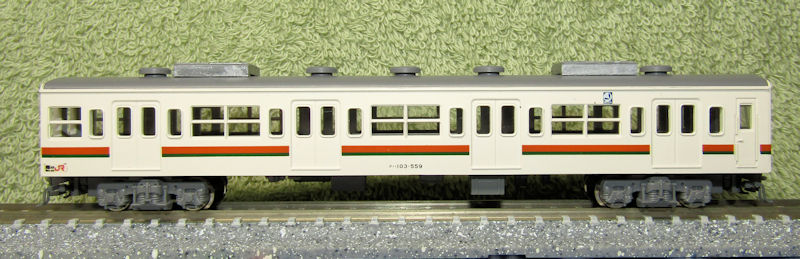 廉価版車両「KOKUDEN」シリーズをベースに作られた103系JR東海色。